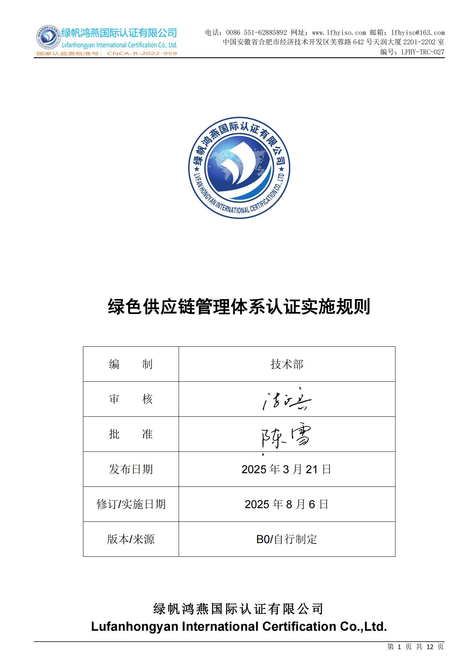 綠帆鴻燕國際認(rèn)證有限公司(簡稱LFHY)是經(jīng)國家認(rèn)證認(rèn)可監(jiān)督管理委員會批準(zhǔn)的第三方認(rèn)證機(jī)構(gòu)