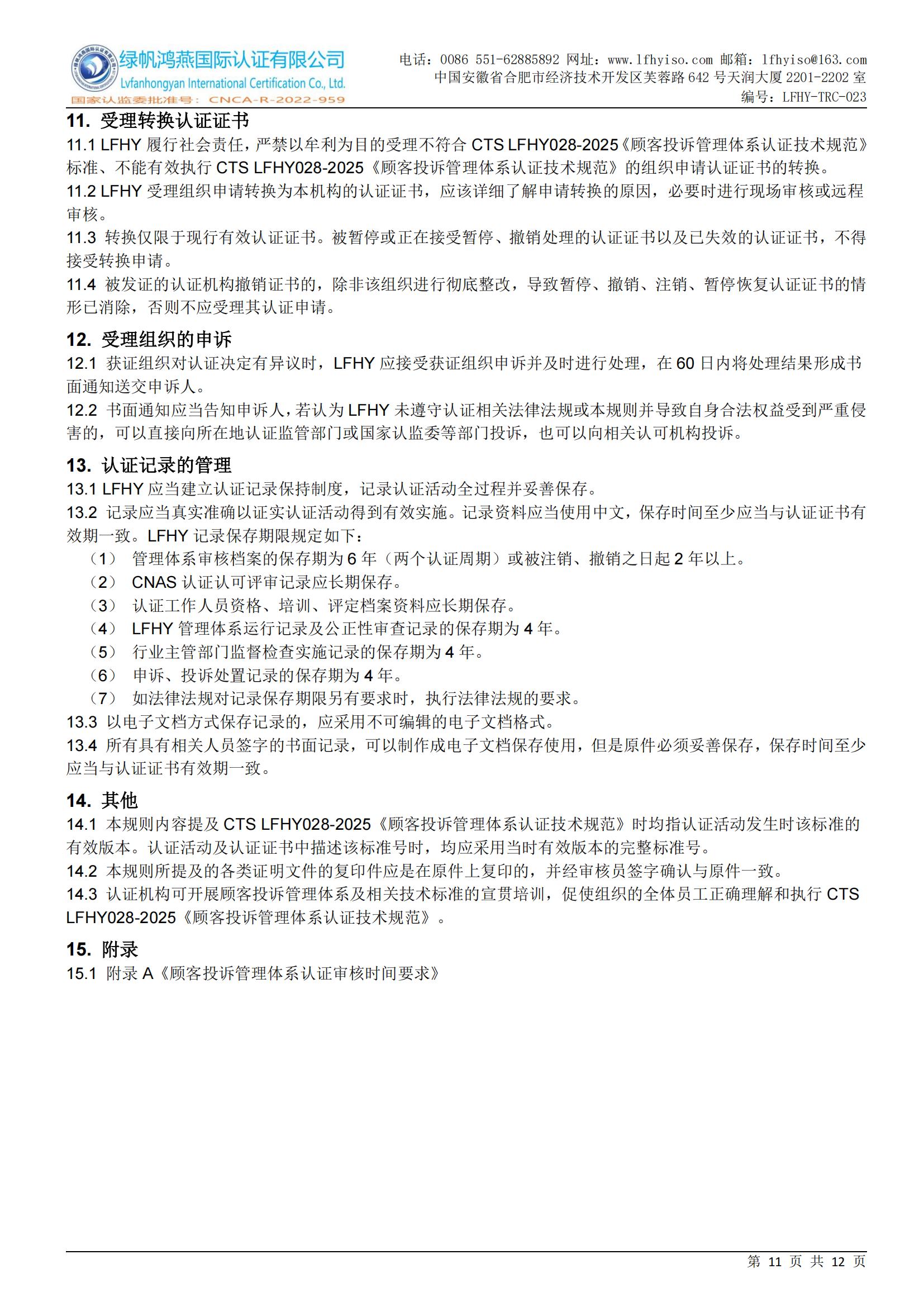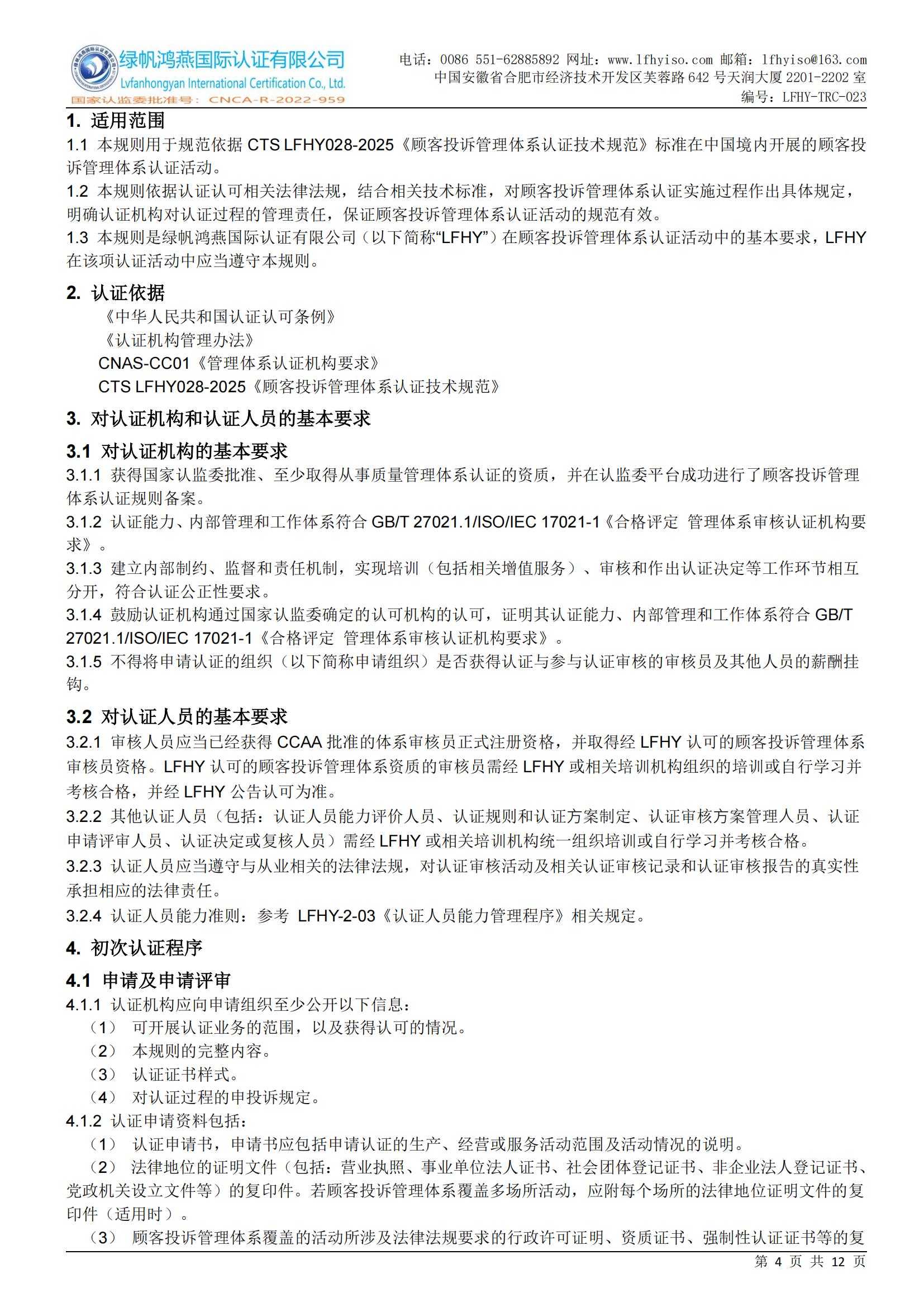 LFHY-TRC-028《顧客投訴管理體系認證實施規則》