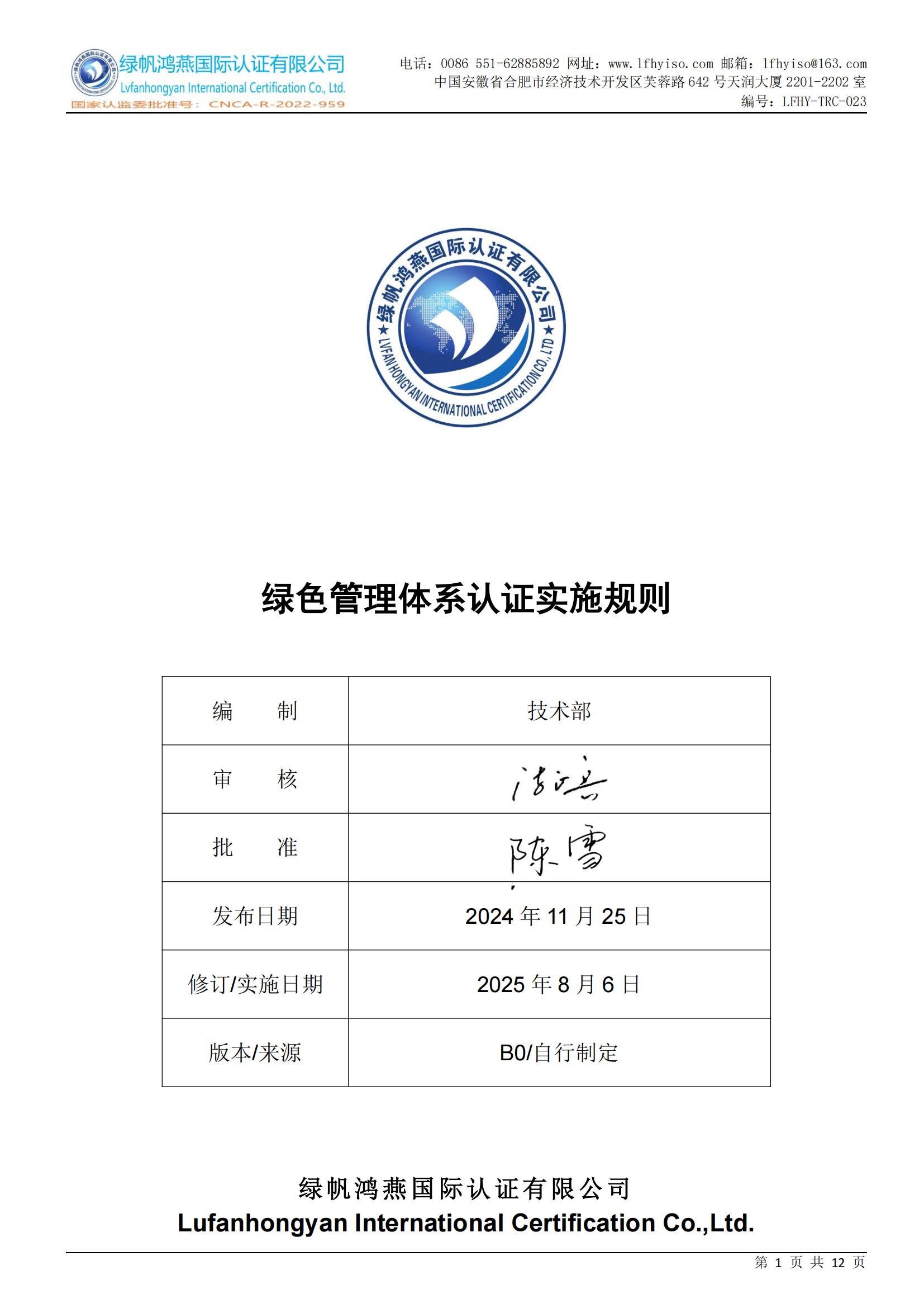 綠帆鴻燕國際認證有限公司(簡稱LFHY)是經(jīng)國家認證認可監(jiān)督管理委員會批準的第三方認證機構