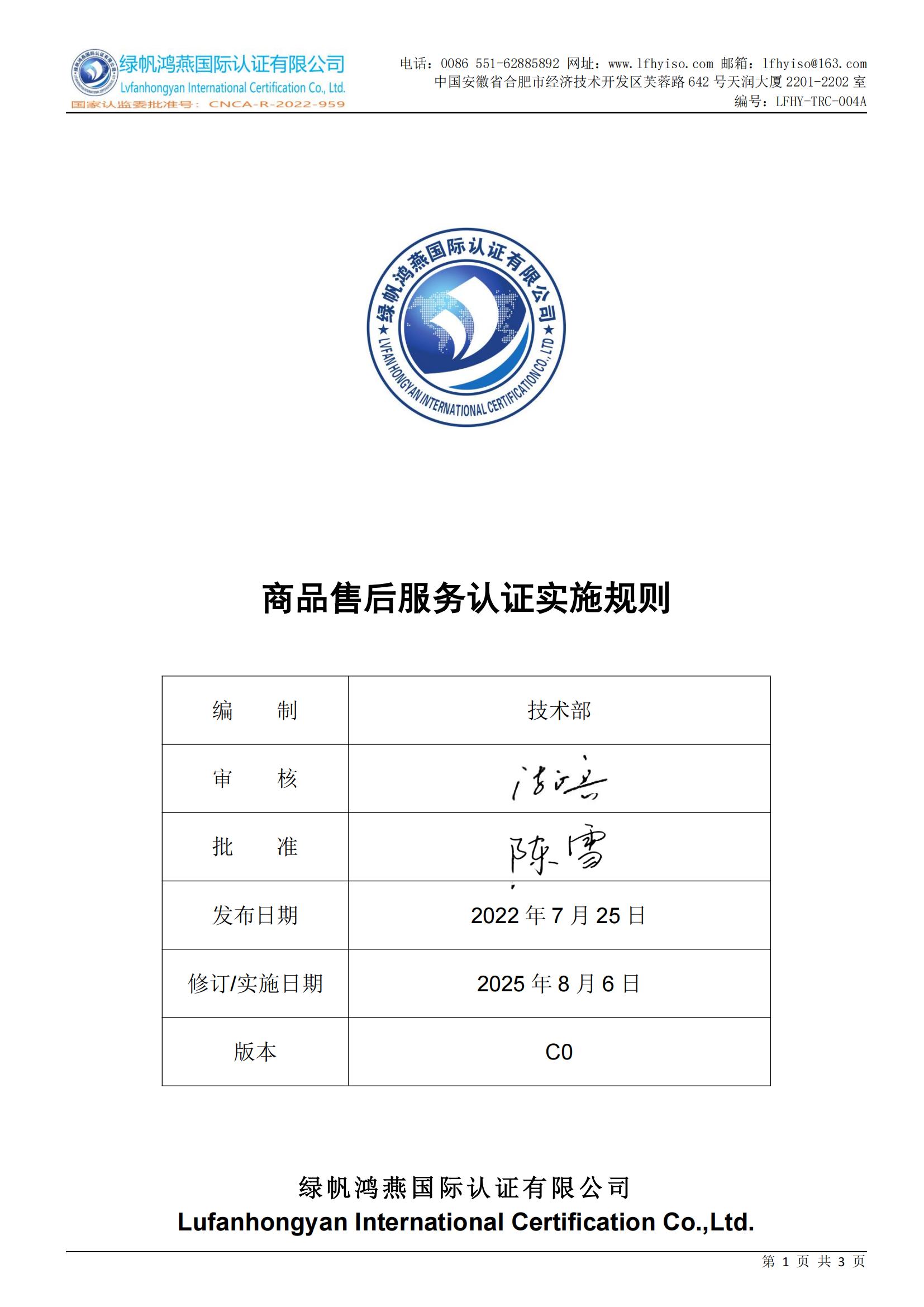 LFHY-TRC-004A《商品售后服務認證實施規則》【清稿】
