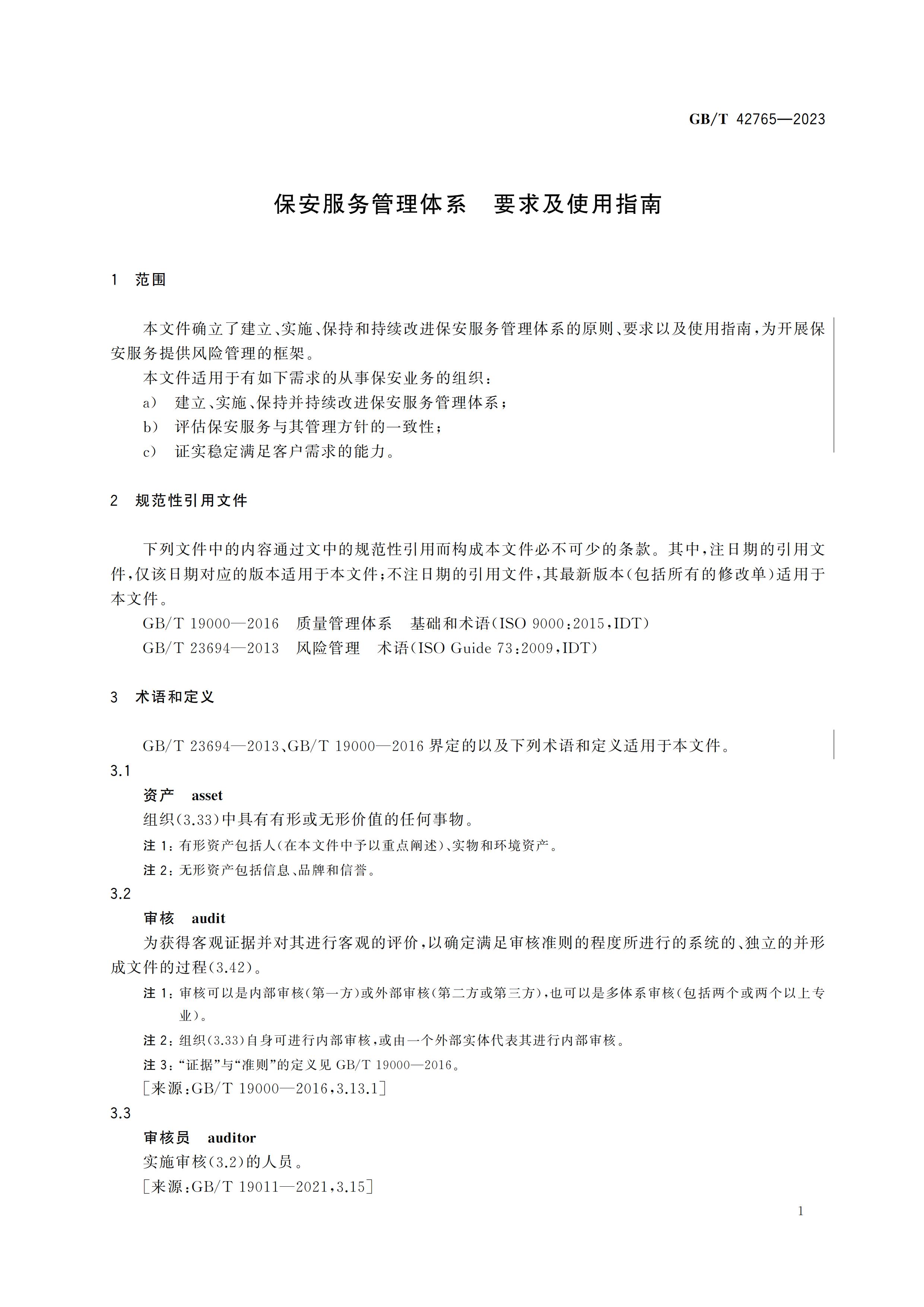 GB/T42765-2023《保安服務管理體系 要求及使用指南》