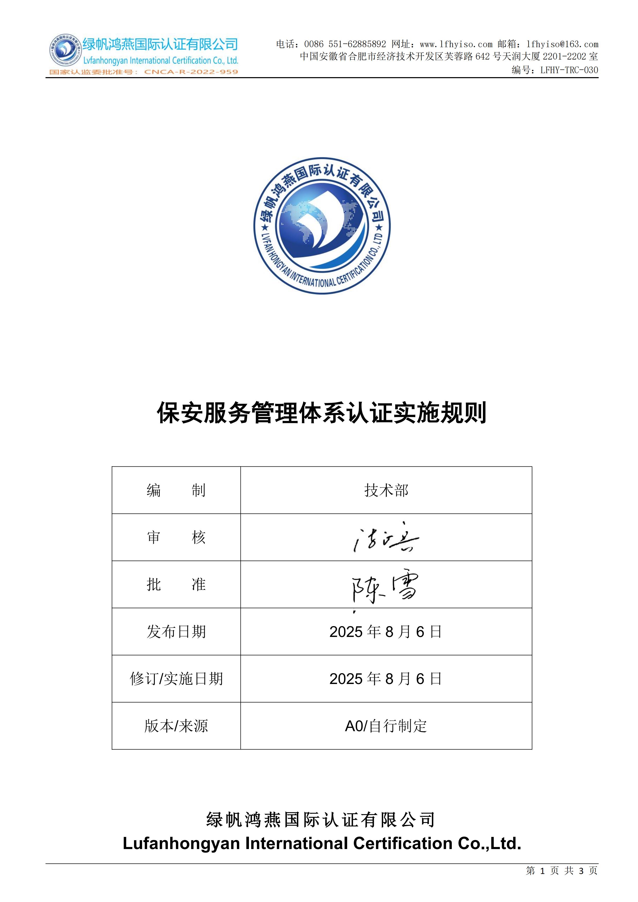 LFHY-TRC-030《保安服務管理體系認證實施規則》【清稿】